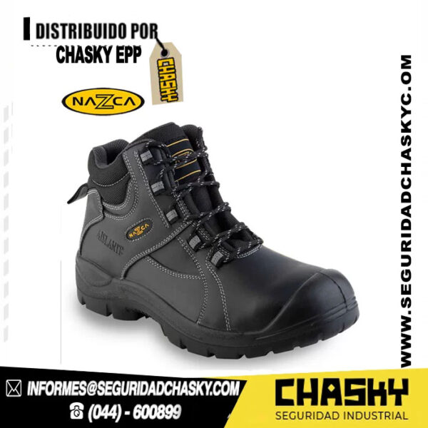 Bota de Pvc Fortress con punta de acero, botín de seguridad con puntera de acero, muy cómoda, fácil de calzar con pasadores.